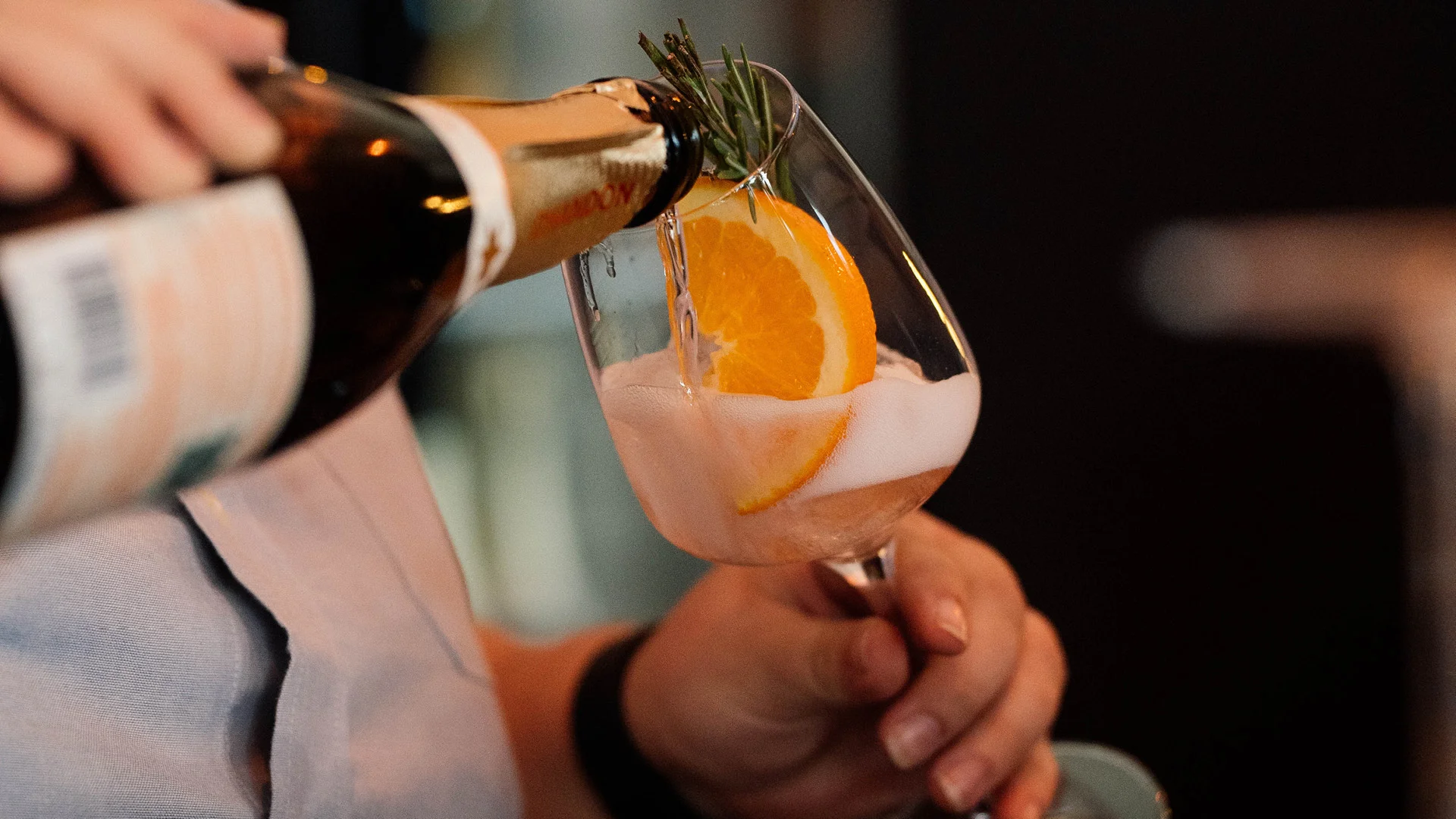 Flaschenservice am Tisch aus der exklusiven Getränkekarte (Champagner, Wein & Spirituosen).