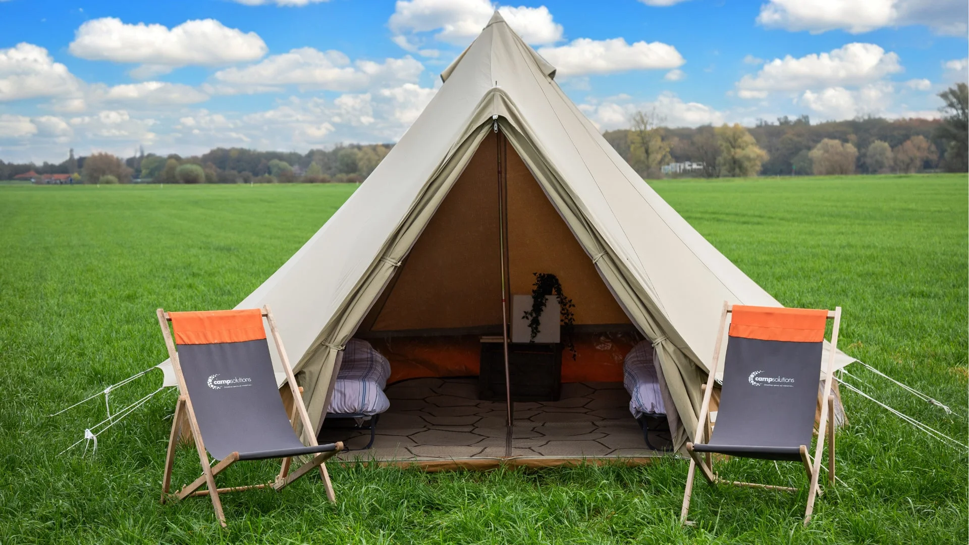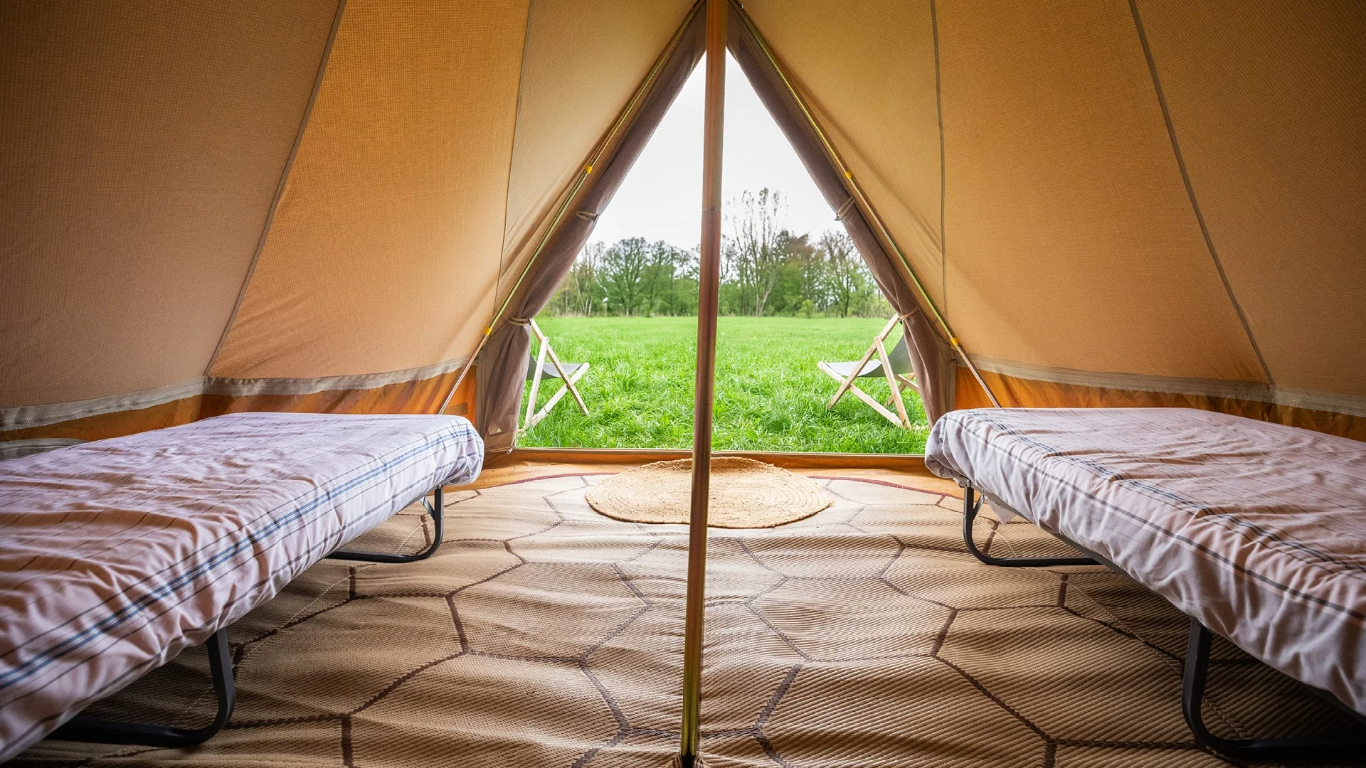Das Deluxe Bell 4m bietet dir und einer Begleitung ein stilvolles Zelt mit gemütlicher Ausstattung. Mit komfortablen Betten, Teppich und Sitzgelegenheiten genießt du alle Vorteile des Glamping Districts – inklusive Strom, hochwertigen Sanitäranlagen und exklusiven Chill-out-Bereichen.